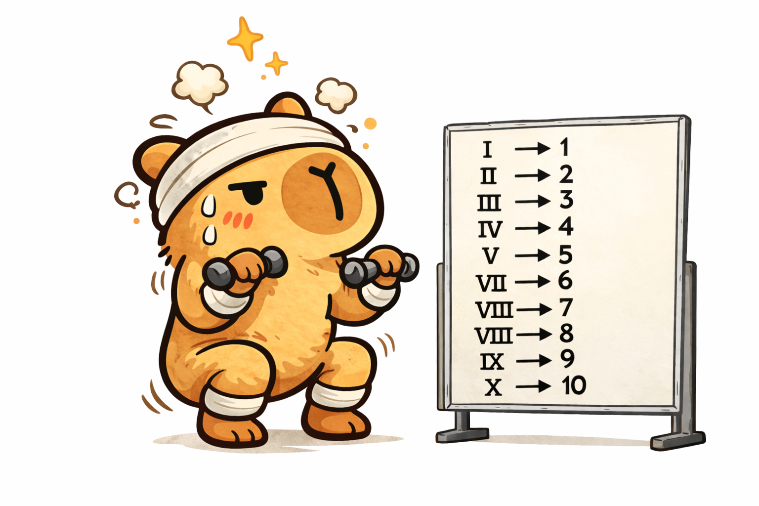 Keep the dumbbell bouncing! Hit it the number of times shown in Roman numerals, then let it drop to score.